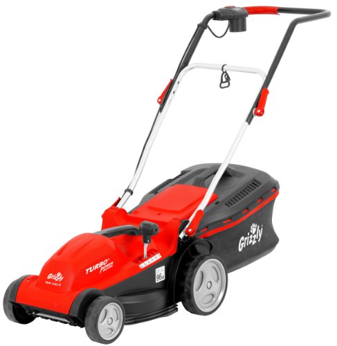 PRODUCT DESCRIPTIONS:Ideal for lawns up to around 600m2, the Grizzly ERM1435G Lawnmower with its 35cm cut is driven by a powerful 1400w motor and features Grizzly excellent Anti-Tip system. Its adjustable cutting-height (19 - 75mm) is controlled from a single-point, and allows you to deal with different grass-types and weather conditions; while its tough polypropylene deck provides longevity, stability and rigidity. Other features include a 38-litre grass box for fewer emptying-breaks; and adjustable handles, which can be folded-down for transportation and storage. Grizzly's three-year guarantee comes as standard.
