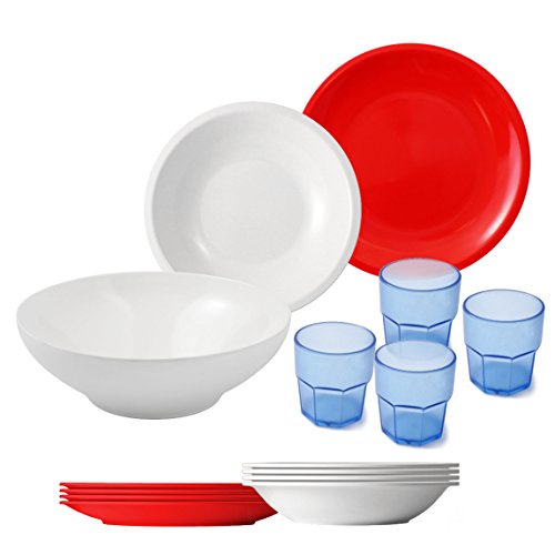 The Best Place To Buy cartaffini - Camping Set White/Red, 14 pieces: 1 Salad Bowl, 4 Dinner Plates, 4 Side Plates, 4 Cups, 1 Bag Online