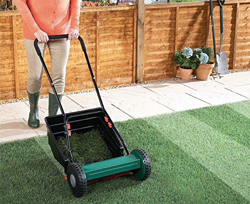 PRODUCT DESCRIPTIONS:Make light work of cutting your lawn and enjoy fantastic professional-style results every time! Our classic push along cylinder lawn mower combines all the great features of this favourite traditional design with a fantastic new adaptation that takes it into a realm of its own. The 5 blades are completely contactless, which means they cut effortlessly through the grass without touching each other. This makes it so much easier to push and so exceptionally quiet, too.The perfect lawn mower for small to medium sized lawns, it is a dream to use and eco-friendly, too. There's no need for a power supply, no cables to restrict your movement or worry about cutting through - and absolutely no chance of annoying the neighbours with your noise. It's so compact and lightweight, too, and pushes along like a dream, leaving behind it stripes you'd normally only find on a cricket field!