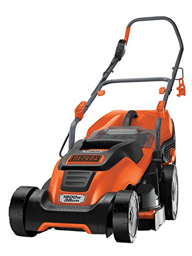 PRODUCT DESCRIPTIONS:The Black and Decker EMAX Electric Lawn Mower Lightweight Electric Lawn Mower with EdgeMax feature for close edge cutting, with E-Drive high torque, high performance cutting system which enables stall free cutting of tall and damp grass and Compact&Go which enables 30% more grass to be collected in grass box. The EMAX has a low profile design that allows for improved access under shrubs and furniture whilst the integrated carry handle makes it easier to lift and move around. The ErgoSwitching design provides low fatigue switching that moulds into the hand. Folding handles allow for the mower to quickly fold down, reducing the footprint for easier, more compact storage. Soft touch technology allows you to adjusts the height of cut with a single movement and the intelli-cable management keeps the cord safely stored when not in use. The grassbox features a bag full window that displays how full the collection box is and when it requires emptying. Specification Input Power: EMAX34I: 1,400 Watt, EMAX38I: 1,600 Watt, and EMAX42I: 1,800 Watt. Cutting System: E-Drive. Cutting Mechanism: Rotary/Metal Blade.Cutting Height Adjustment: 20, 30, 40, 50, 60, 70mm.Black and Decker EMAX38I Rotary Lawnmower Input Power: 1,600 Watt.Cutting Width: 38cm.Cutting Height Adjustment: 20, 30, 40, 50, 60, 70mm.Grassbox Capacity: 45 Litres.Cable Length: 14m.
