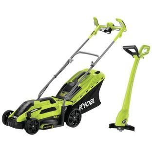 PRODUCT DESCRIPTIONS:Designed for the compact British Garden, the Argos exclusive Ryobi Electric Rotary 1200W Lawnmower and 300W grass trimmer twinpack delivers leading performance. With easy to use features, the mower also has a compact design for simple storage. The trimmer is both lightweight and powerful. The compact design allows easy storage, and first time assembly in under 5 minutes this also allows for easier storage. The ergonomic VertebraeTM handle on the lawnmower, and adjustable handle on the grass trimmer makes operation more comfortable, and provides excellent control and mobility. The EasyEdgeTM function allows mowing right to the edge of borders, paths and fences for a greater finish. The grass trimmer can then be used for finishing and tidying. Model number: RLM12LT300. Lawnmower features: Corded. 1250 watt electric rotary motor. Metal blade. 33cm blade width. Cutting heights ranging from 2cm - 7cm. 35 litre grass collection box. 8 power cable. Safety switch. Weight 13kg. Grass trimmer features: Corded. 300 watt motor. Edging facility. Cutting width 23cm. Cable length 4m. Dual line feed - ideal for overgrown areas. Safety guard. Weight 2.3kg. General information: Manufacturer's 2 year guarantee.