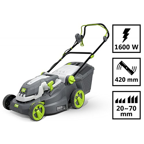 PRODUCT DESCRIPTIONS:This lawn mowers, electric broyeuse Vito delivers a power of 1600 W. It is ideal for mowing your lawn without having to worry about a thing. Lightweight, compact and effective, it allows you to mow up to 800 m² Ground. It has the function of grass clippings. This device has a collecting container of a bunch of 45L. Three different blade cutting heights are available between 20 and 70/3.5 inches with a width of 420 mm.
