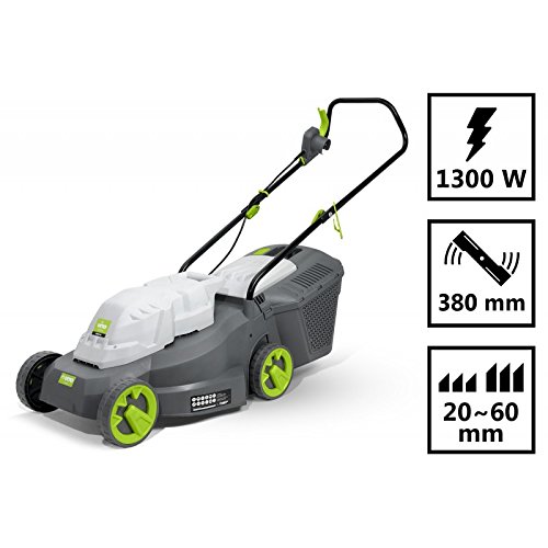 PRODUCT DESCRIPTIONS:This lawn mowers, electric broyeuse Vito delivers a power of 1300 W. It is ideal for mowing your lawn without having to worry about a thing. Lightweight, compact and effective, it allows you to mow up to 600 m² Ground. It has the function of grass clippings. This device has a collecting container of a bunch of 35L. Three different blade cutting heights are available: 20, 40, 60 mm to 380 mm Width.